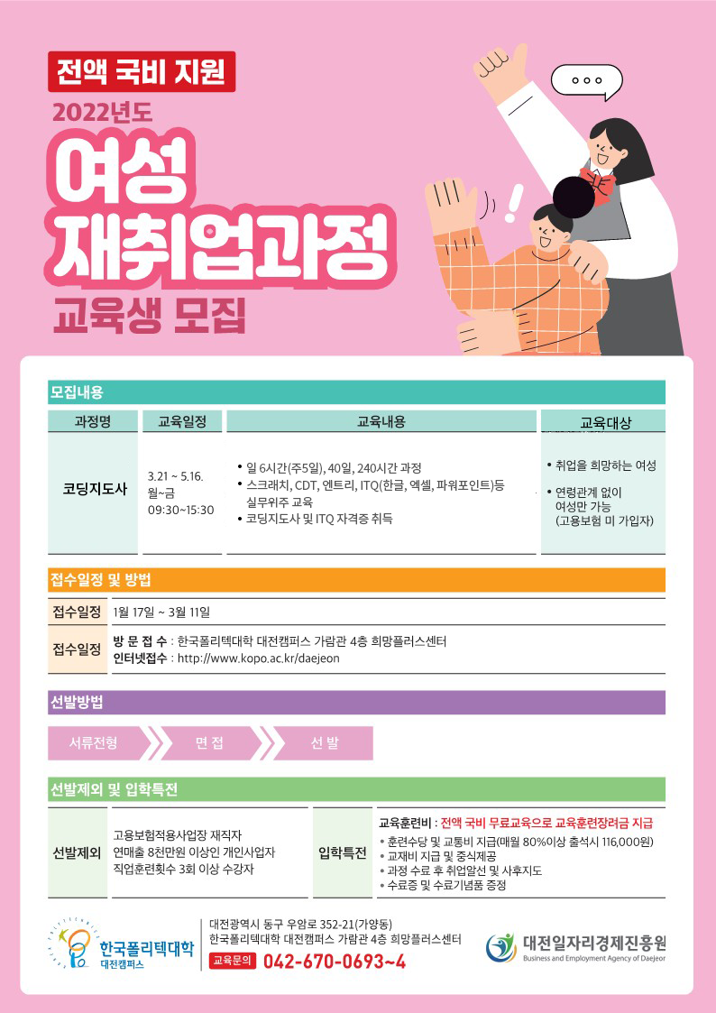 방문접수 : 한국폴리텍대학 대전캠퍼스 가람관 4층 희망플러스센터