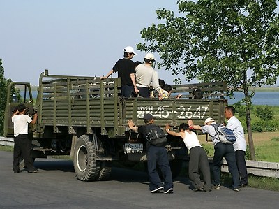 구 고속도로를 따라서 운행을 하다 보면 북한 경제의 비참한 상태를 알 수 있습니다.