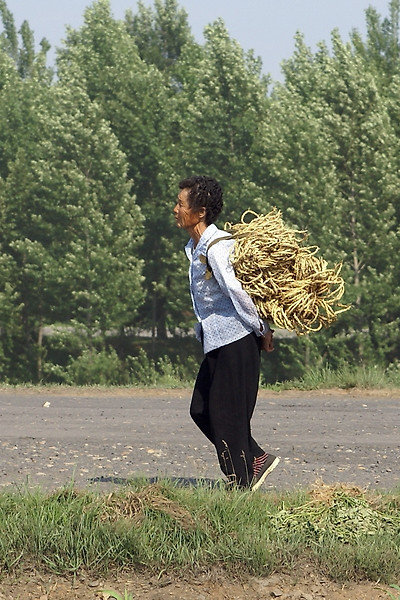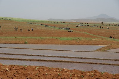 대안군의 밭입니다. 북한에서 농작일은 여전히 맨손으로 이루어집니다.