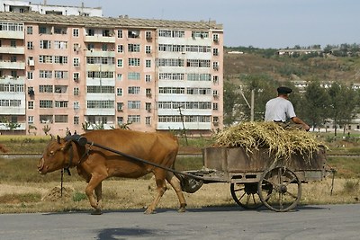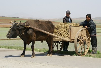 평양-남포 고속도로에 있는 소달구지입니다.