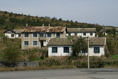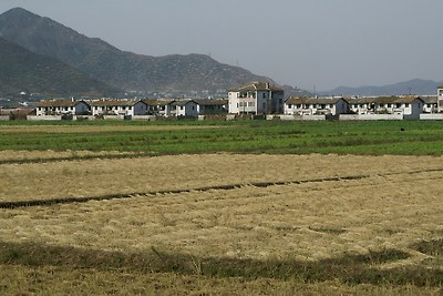 강서군에 있는 농촌주택입니다. 바로 옆에 평양-남포 고속도로가 있습니다.