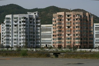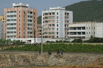 천리마군의 아파트입니다. 바로 옆이 평양-남포 고속도로입니다.
