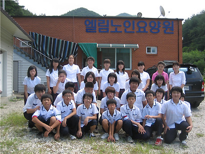 이날 학생들은 떡, 과일, 음료수 등을 준비하여 학교버스를 타고 학교 선생님들과 엘림원에 도착하여 남학생들은 마당의 잡초를 뽑고, 시설 청소를 하였으며, 여학생들은 입소해서 요양 중이신 요양원의 할머니들에게 안마도 해드리고 말벗이 되어드려 잠시나마 훈훈한 가족의 정이 넘치게 했다.