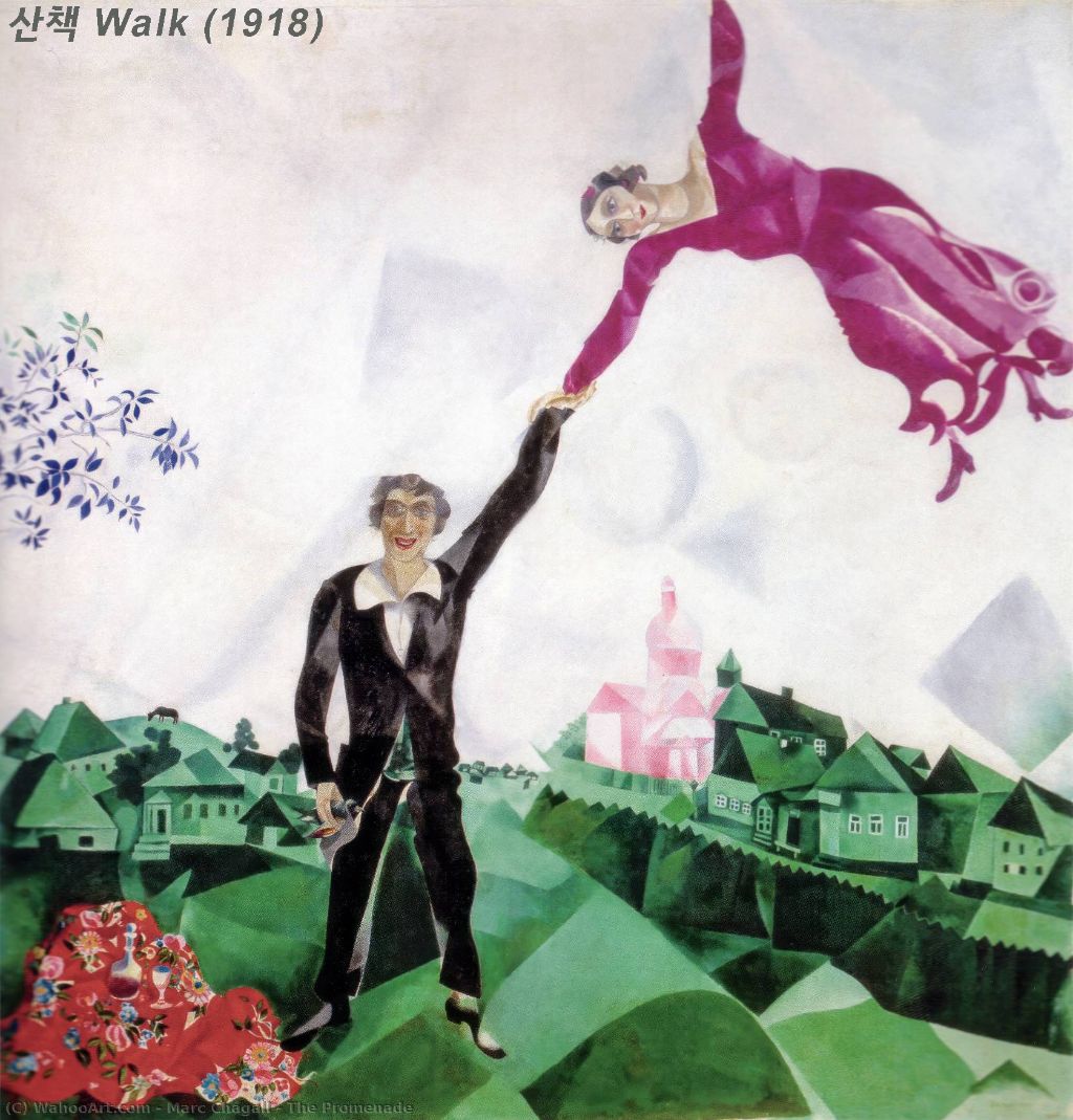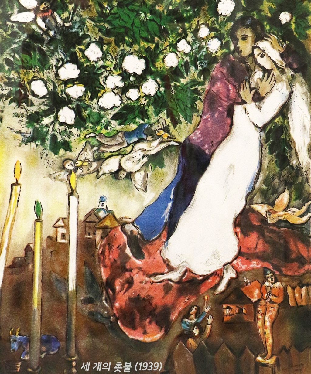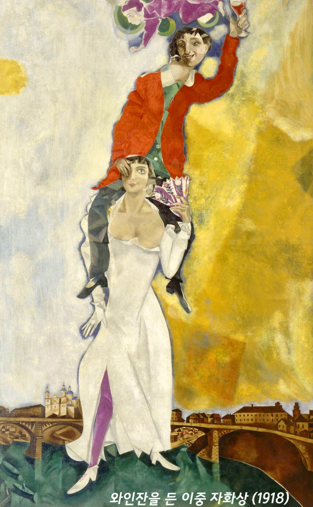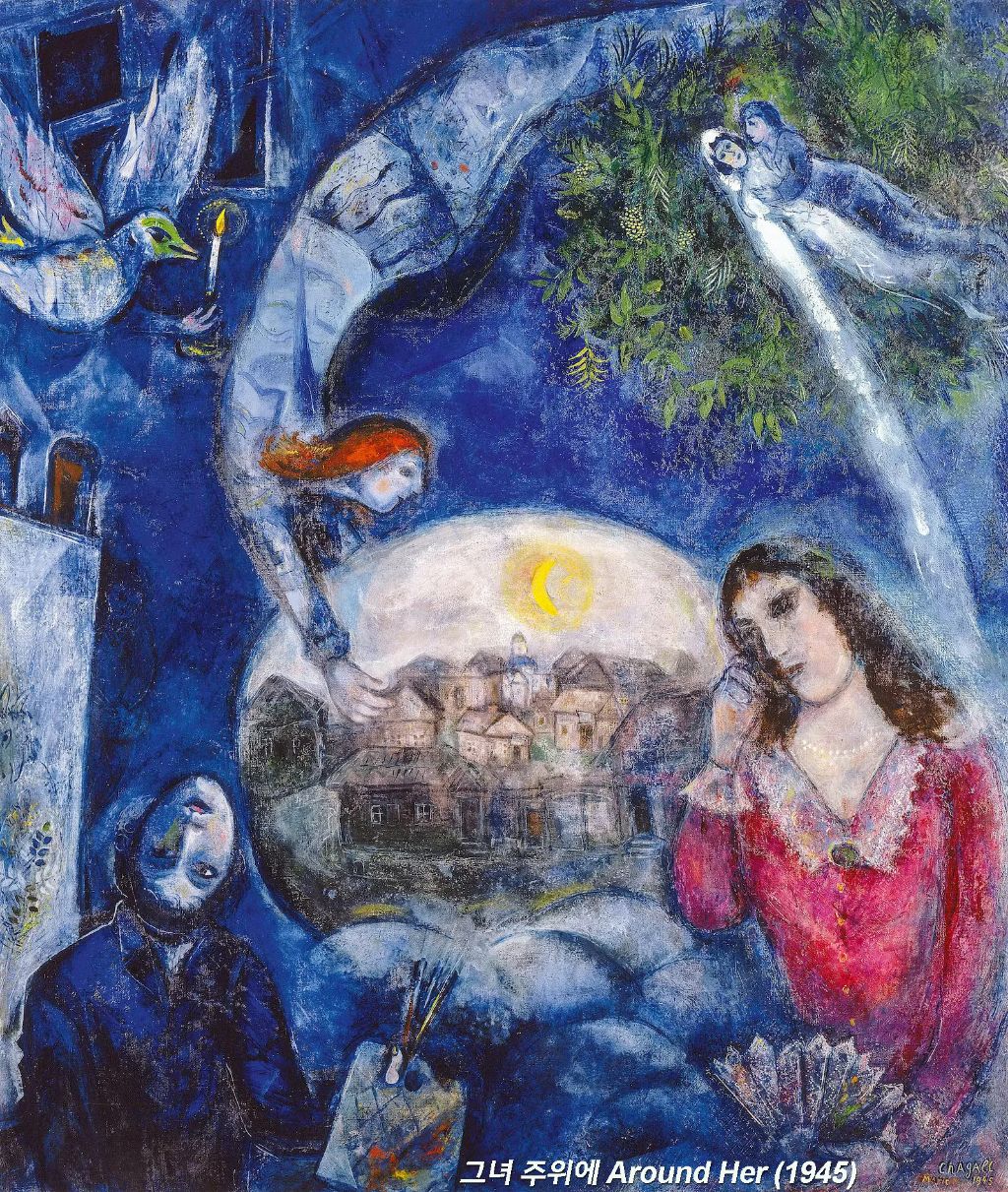 1944년 아내 벨라가 갑자기 병으로 죽자 한동안 그림을 못 그리다가, 딸의 응원에 힘을 얻어, 고향 마을에서의 벨라와의 추억과 결혼식의 기억을 다시 그리기도 했답니다.