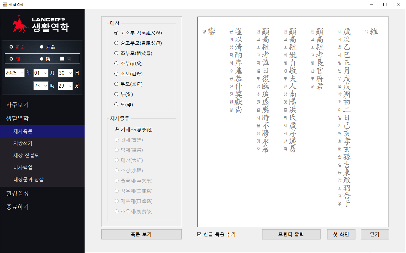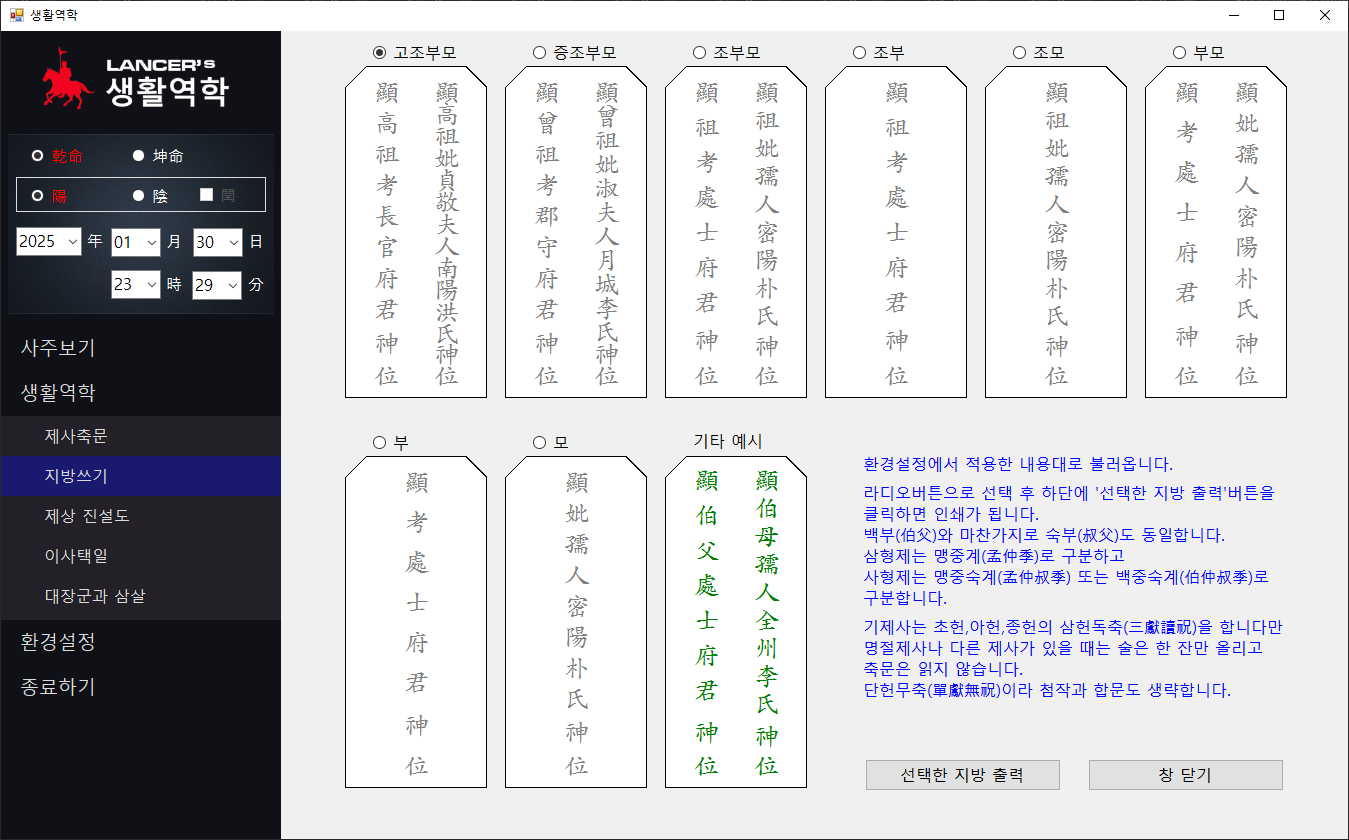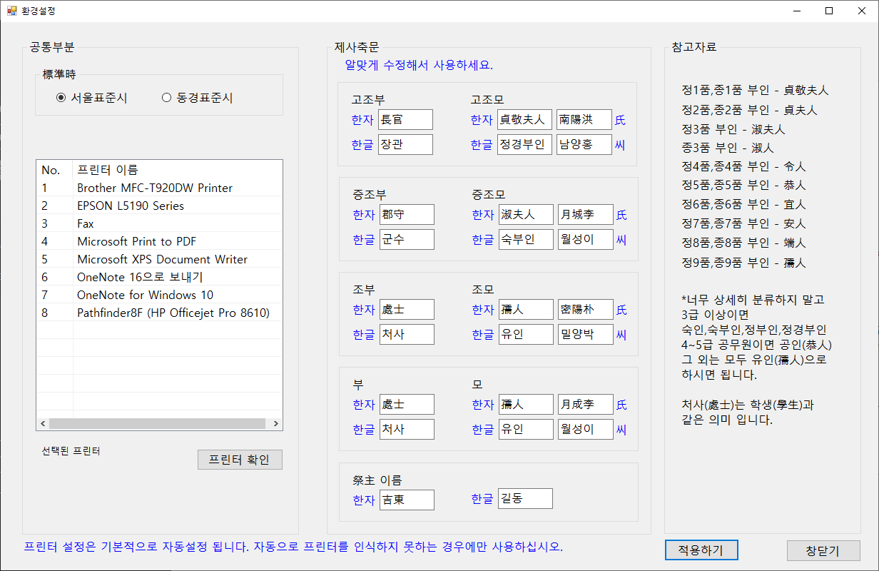 제사 축문과 지방을 자동작성하고 출력해주는 프로그램 입니다.