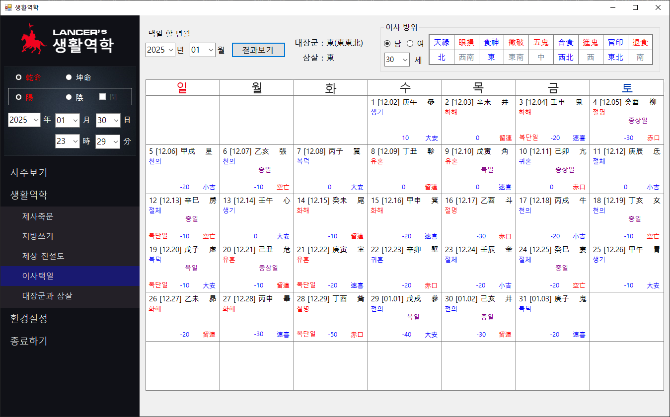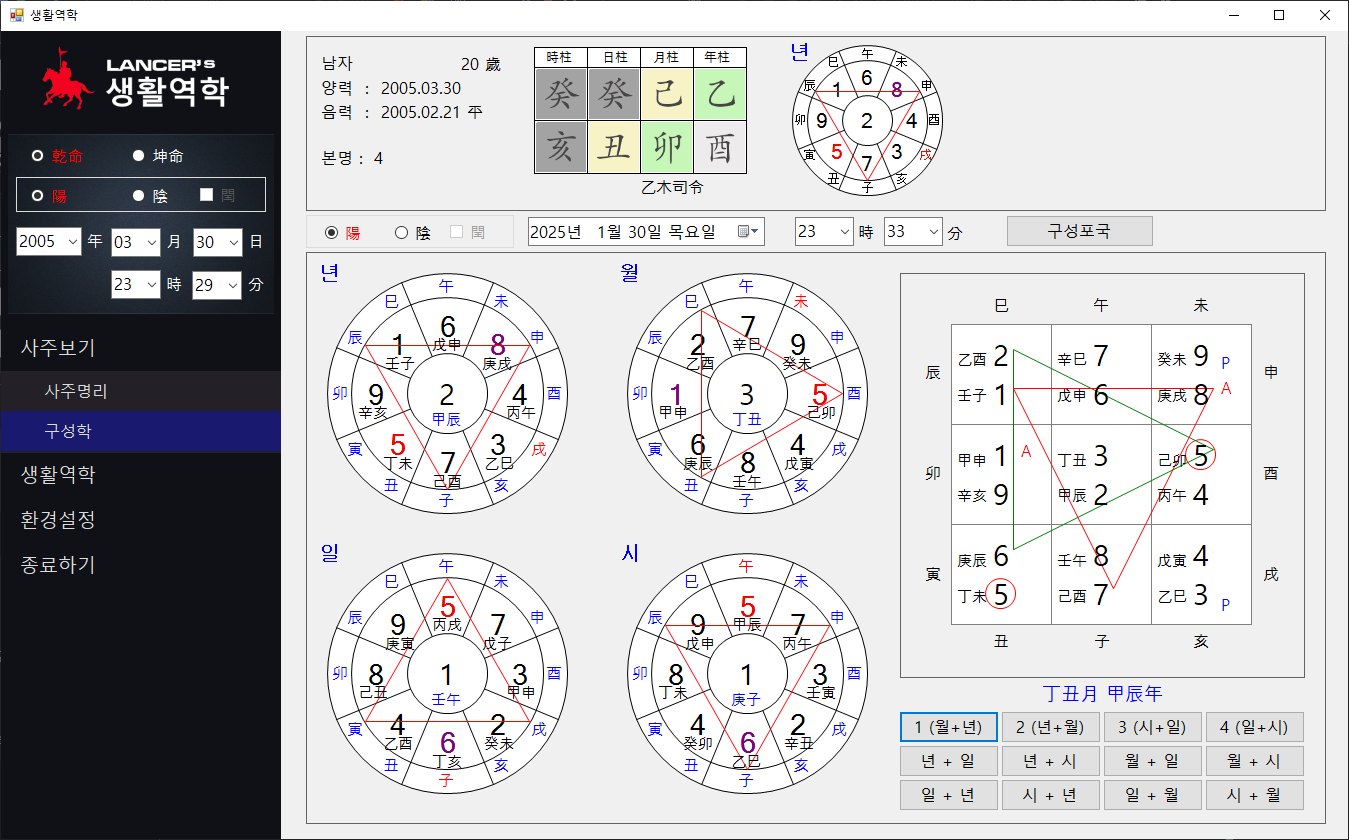 사주와 구성학도 포함되어 있습니다만 사주와 구성학은 2000년 ~ 2035년 까지만 제공합니다.