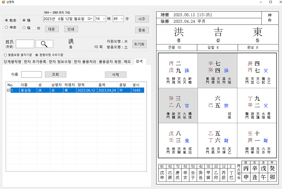 성명학 저장및 조회, 인쇄 기능입니다.