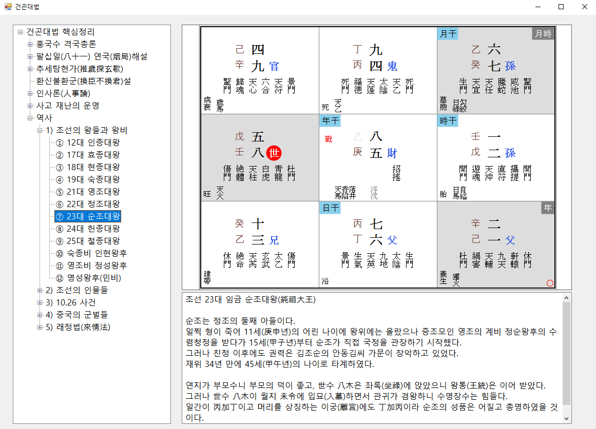 이것은 학선선생님의 건곤대법에 나오는 핵심사항들을 정리한 것으로 건곤대법에 나오는 거의 모든 명반이 있으므로 신속하게 조회해서 내용을 보실 수 있습니다.