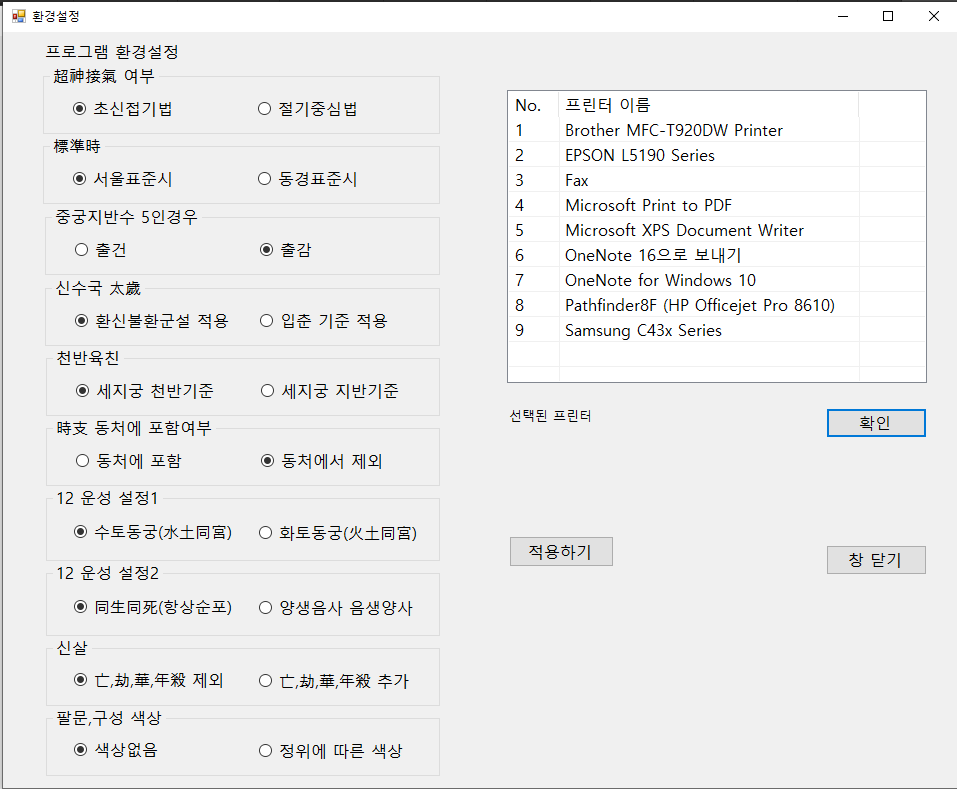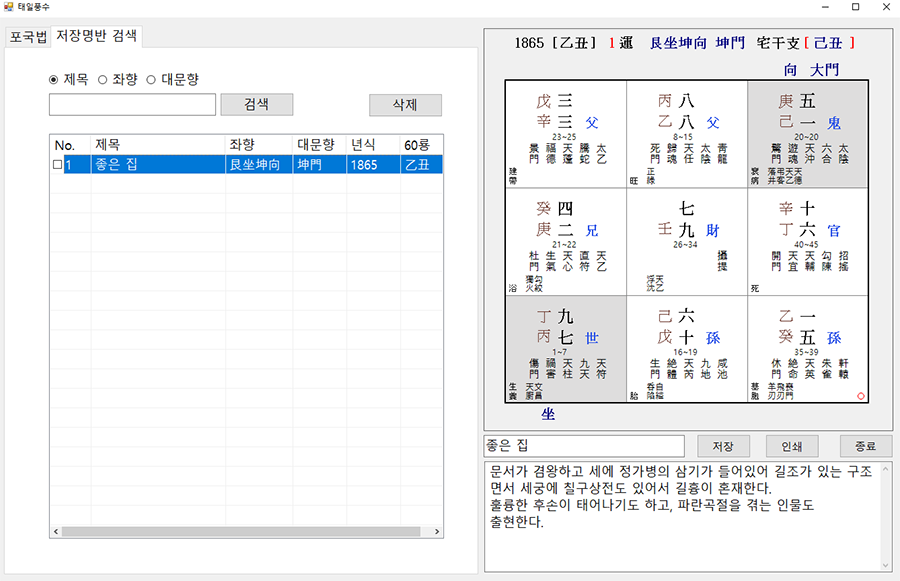 학선 기문둔갑 첫 실행화면 입니다.