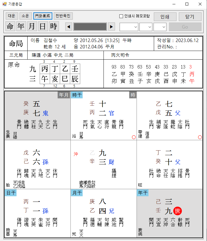 기문둔갑 화면 입니다.