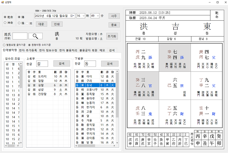 기문 성명학 화면 입니다.