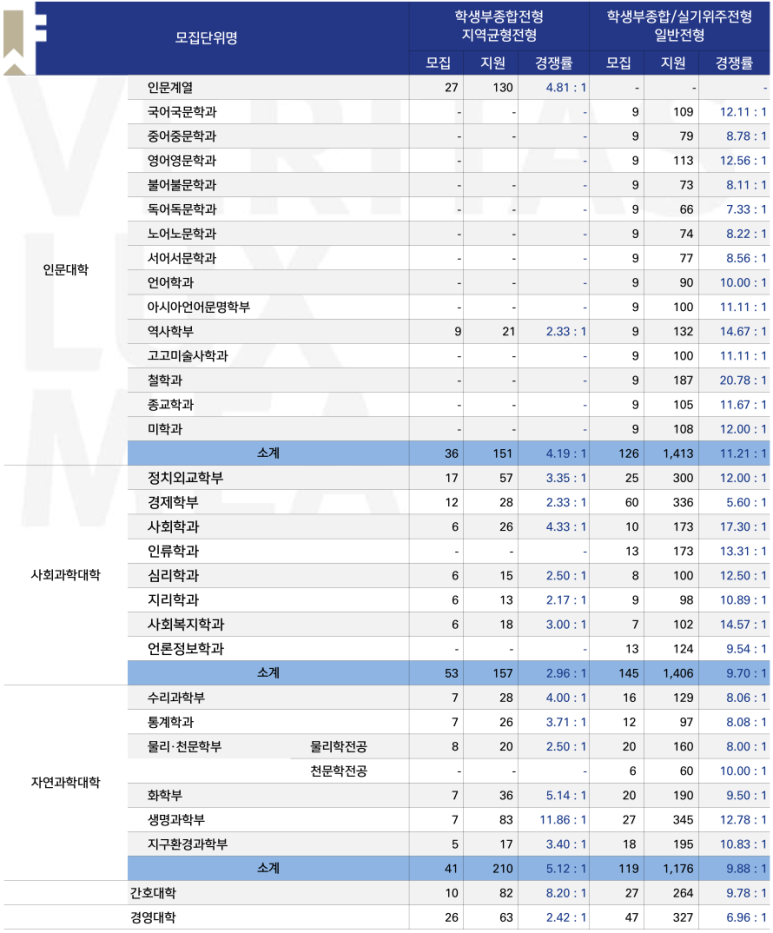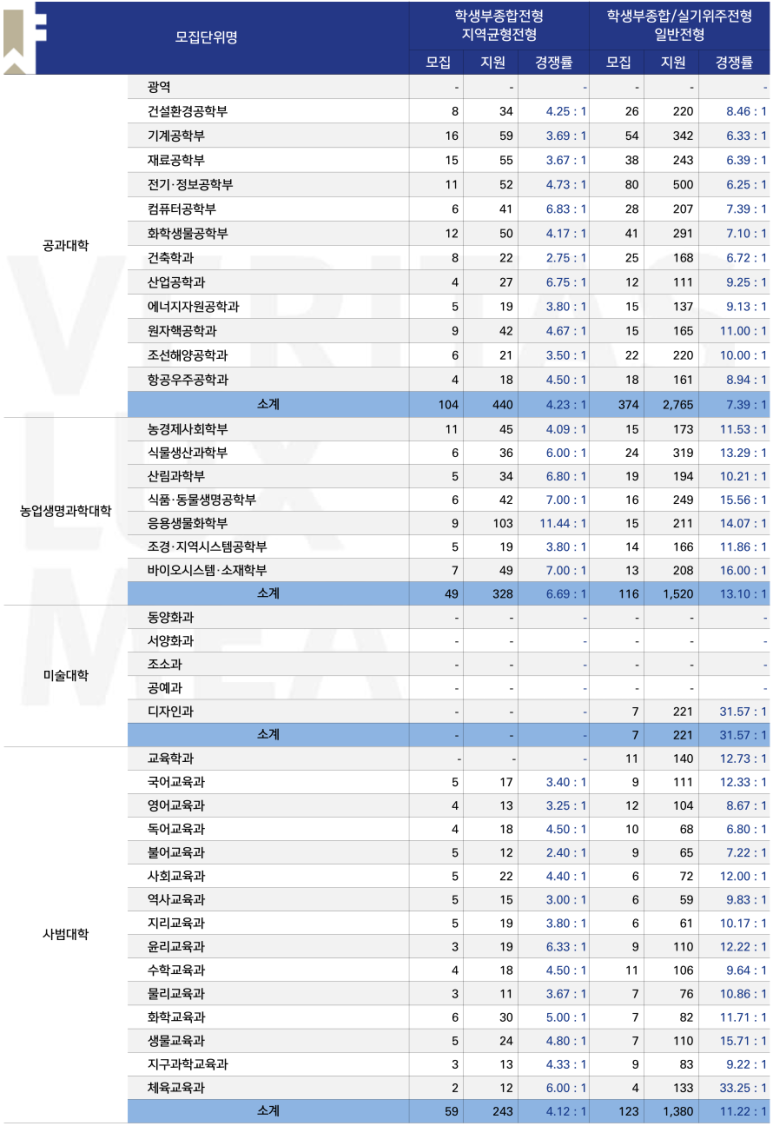 2024학년도 서울대학교 지역균형전형, 일반전형의 모집 결과입니다.