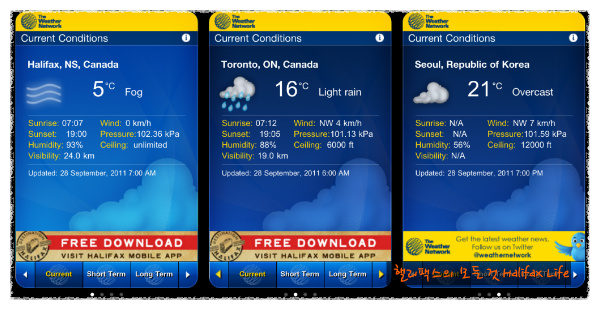 헐. 영상 5도.ㅋㅋㅋ 오늘 아침 7시 기준 핼리팩스의 온도랍니다!!!