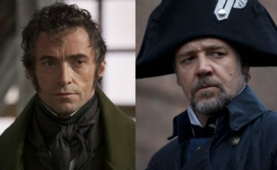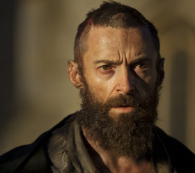 '레 미제라블'에서 가난 때문에 비참하게 살다 결국 죽어가게 된 여인 판틴(앤 해서웨이)을 장발장(휴 잭맨)이 고통스런 표정으로 어루만지고 있다.