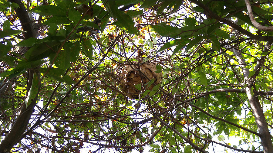 추석 전날 봐둔 깊은 산골의 검정 말벌집