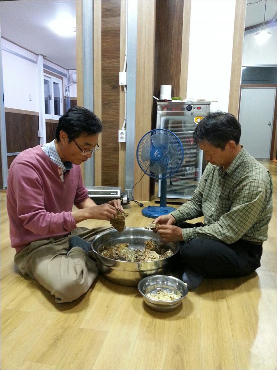 1, 깨끗이 씻고 충분히 찐 다음에 작은 덩이로 썰어서 말린다.
