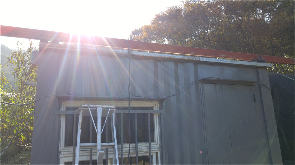 컨테이너 지붕 판넬과 쉼터 지붕의 판넬을 사진과 같이 조립하였습니다.