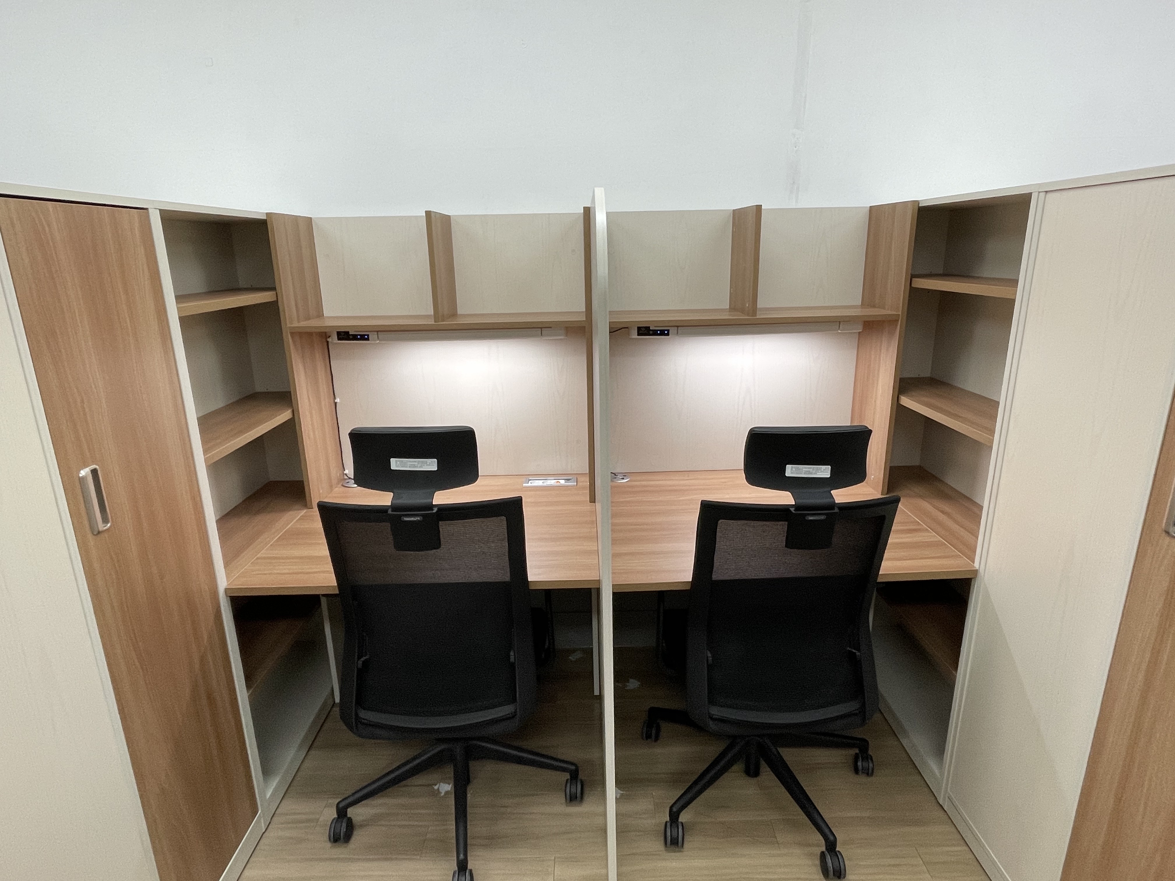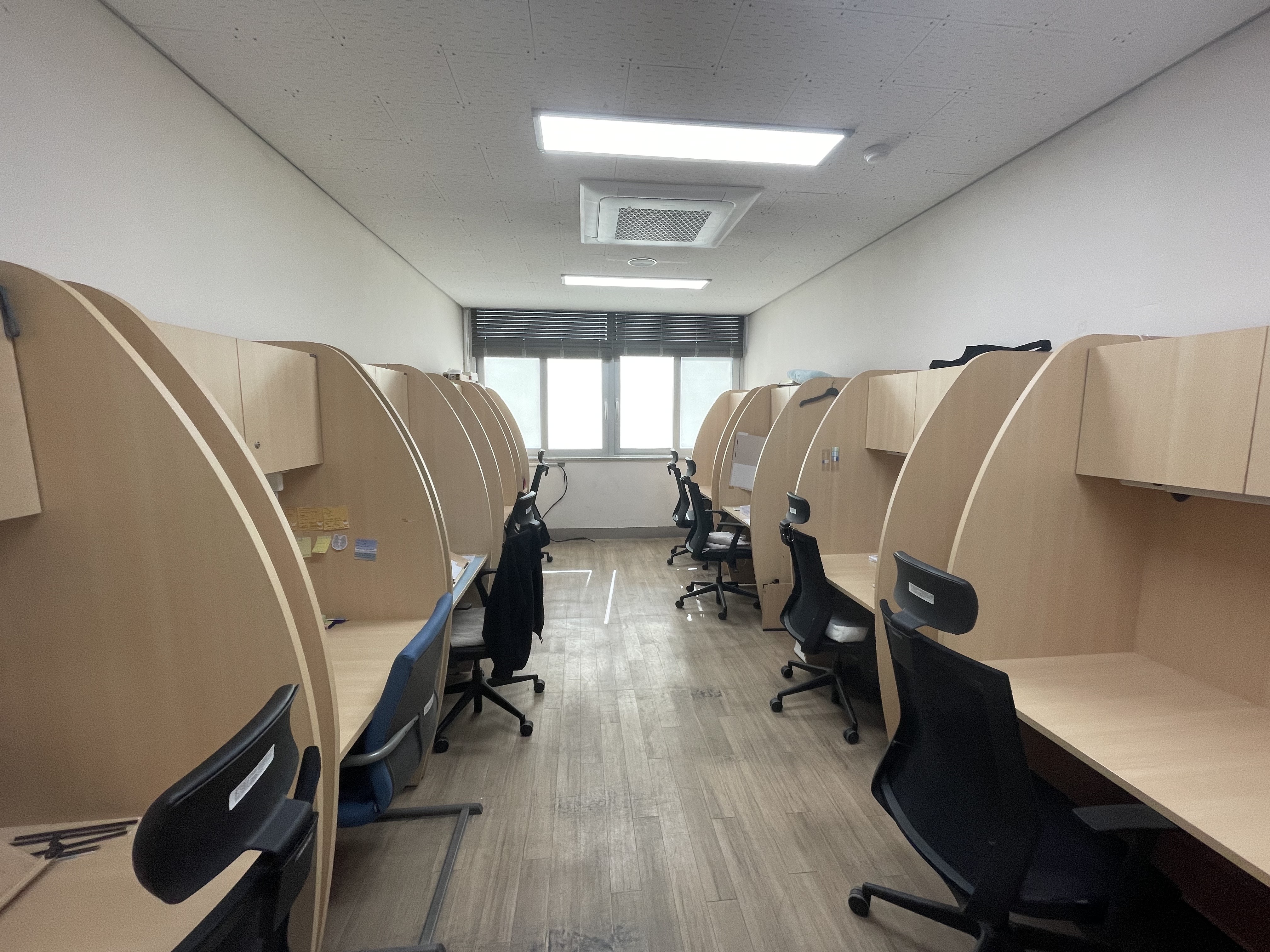 1. 큰방(각 방당 19석, 총 2개 호실, 총38석) - 두가지 색상으로 구성, 책장에 옷장 구비