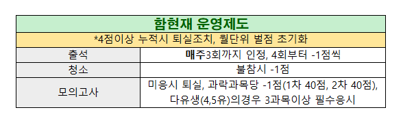 3월입실부터 함현재 운영제도가 기존과 다르게 개편되어 조금 더 엄격한 기준으로 운영하고자하니