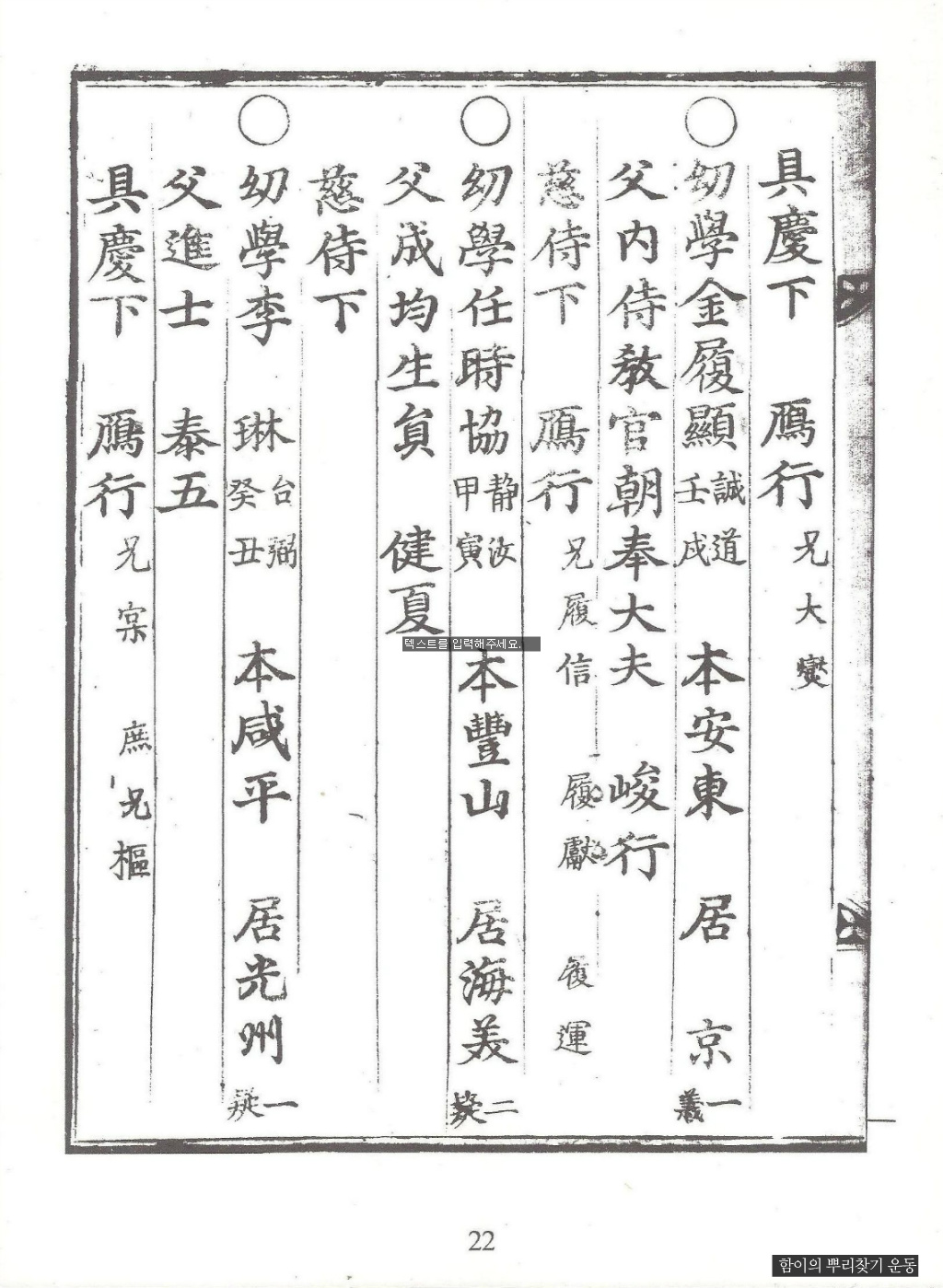 이숙빈祖의 子 =이태오祖의 子=이림祖까지 3대가 사마시에 합격한 방목입니다.