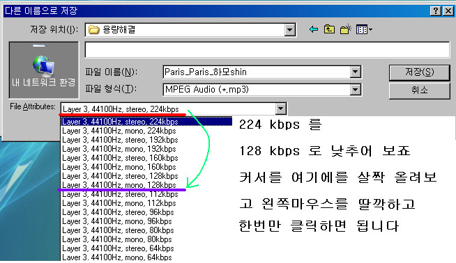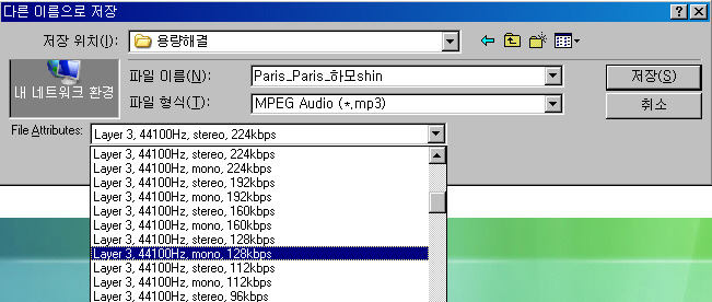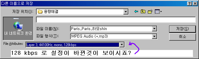 고 그냥 Save 로 하면 당초의 용량이 큰 ( 고음질?) 파일 자체가 없어져 버리는 결과이기 때문이죠