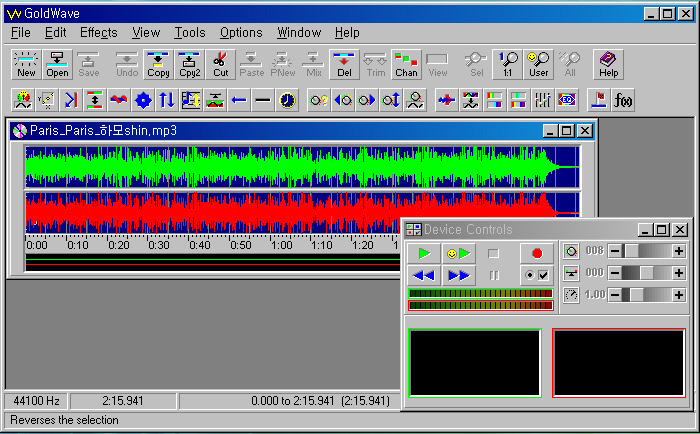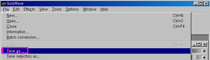 먼저 골드웨이브 프로그램을 실행 하여 File > Open 하여 문제가 된 (용량이 큰) 파일을 불러 들이