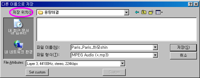 하여튼 맨 아래 칸에 보시면 File Atributes 칸에 Layer 3,44100 Hz, 224 kbps 라고 되어 있죠...