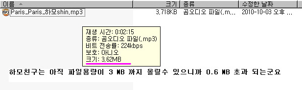 셔야죠 ? 저는 Paris_paris_하모shin 이라는 파일이 크기가 3.6 MB 라서 이것을 해결 하고자 합니