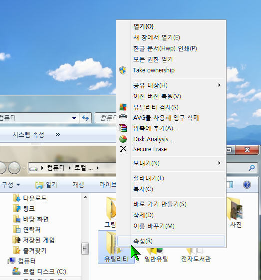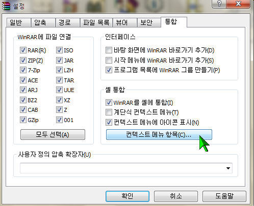 마우스 오른쪽 실행장면 윈라 표시가 딱한개 뜨잖아요^^