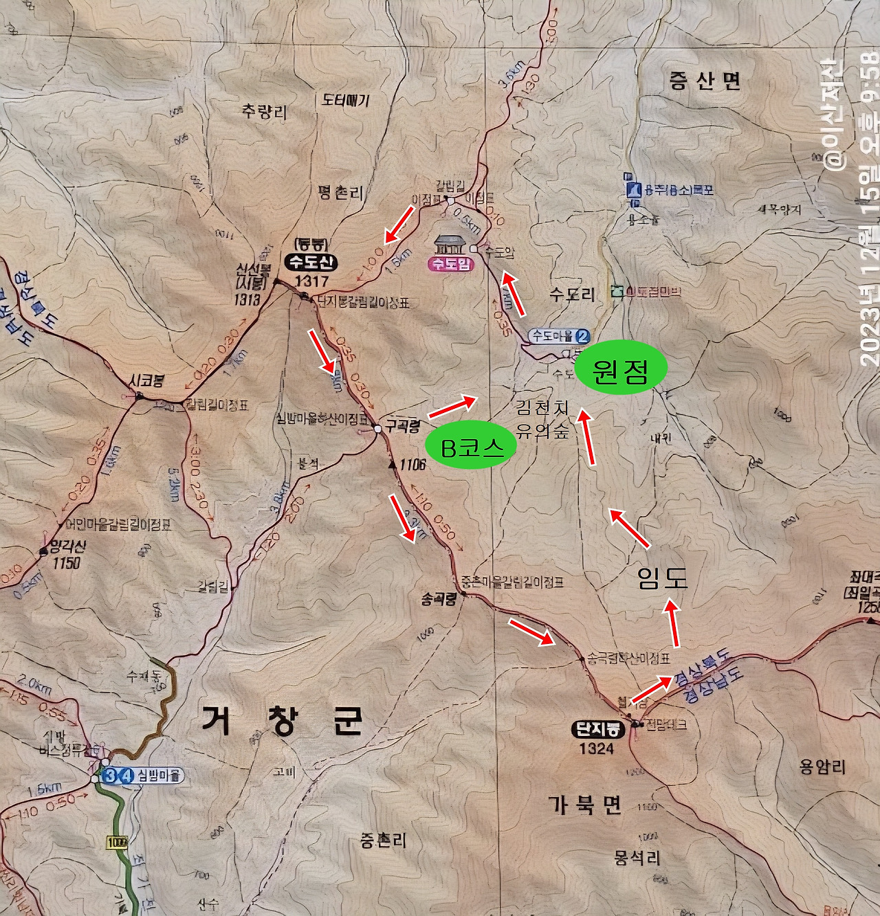 ■ 산행코스: 수도리주차장 - 수도암 - 수도산 - 구곡령 - 송곡령 - 단지봉 - 임도 - 수도리주차장 (12.6km 6시간)