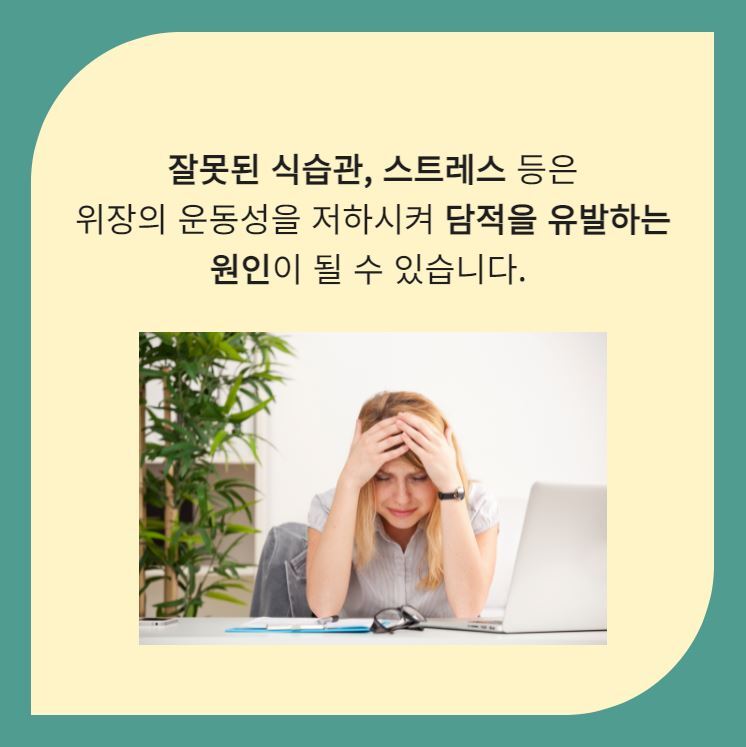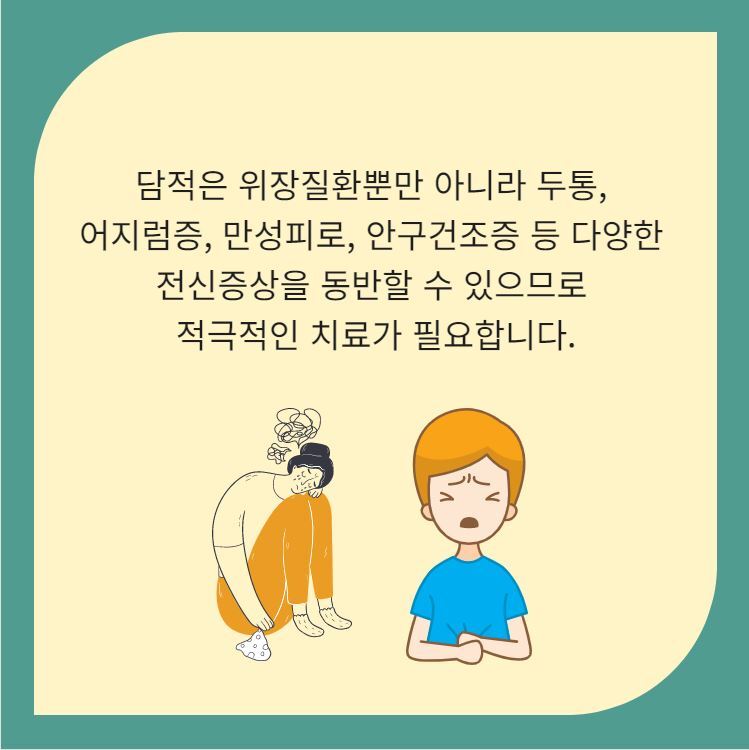 담적은 선천적으로 위장이 약하거나 과식, 폭식, 야식 등의 잘못된 식습관에 의해 형성됩니다. 이런 원인은 위장의 점막을 손상시키고 위장의 전반적인 운동성을 떨어트려 다양한 위장증상을 유발하게됩니다.