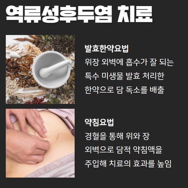 담적으로 인한 역류성후두염 치료법은 담적치료를 통하여 굳어진 위장과 식도를 풀어주어야 합니다. 대표적인 방법은 아래와 같습니다.