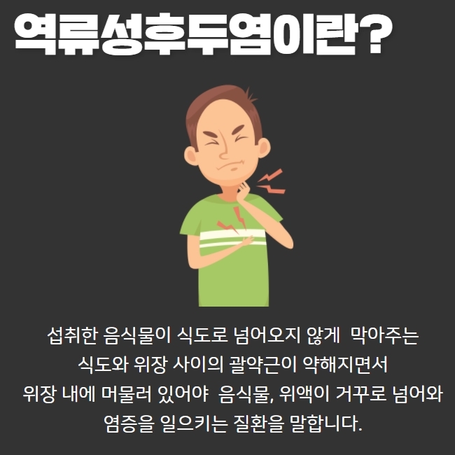 역류성후두염은 섭취한 음식물이 식도로 넘어오지 않게 막아주는 식도와 위장 사이의 괄약근이 약해지면서 위장 내에 머물러 있어야 할 음식물, 위액이 거꾸로 넘어와 염증을 일으키는 질환을 말합니다.