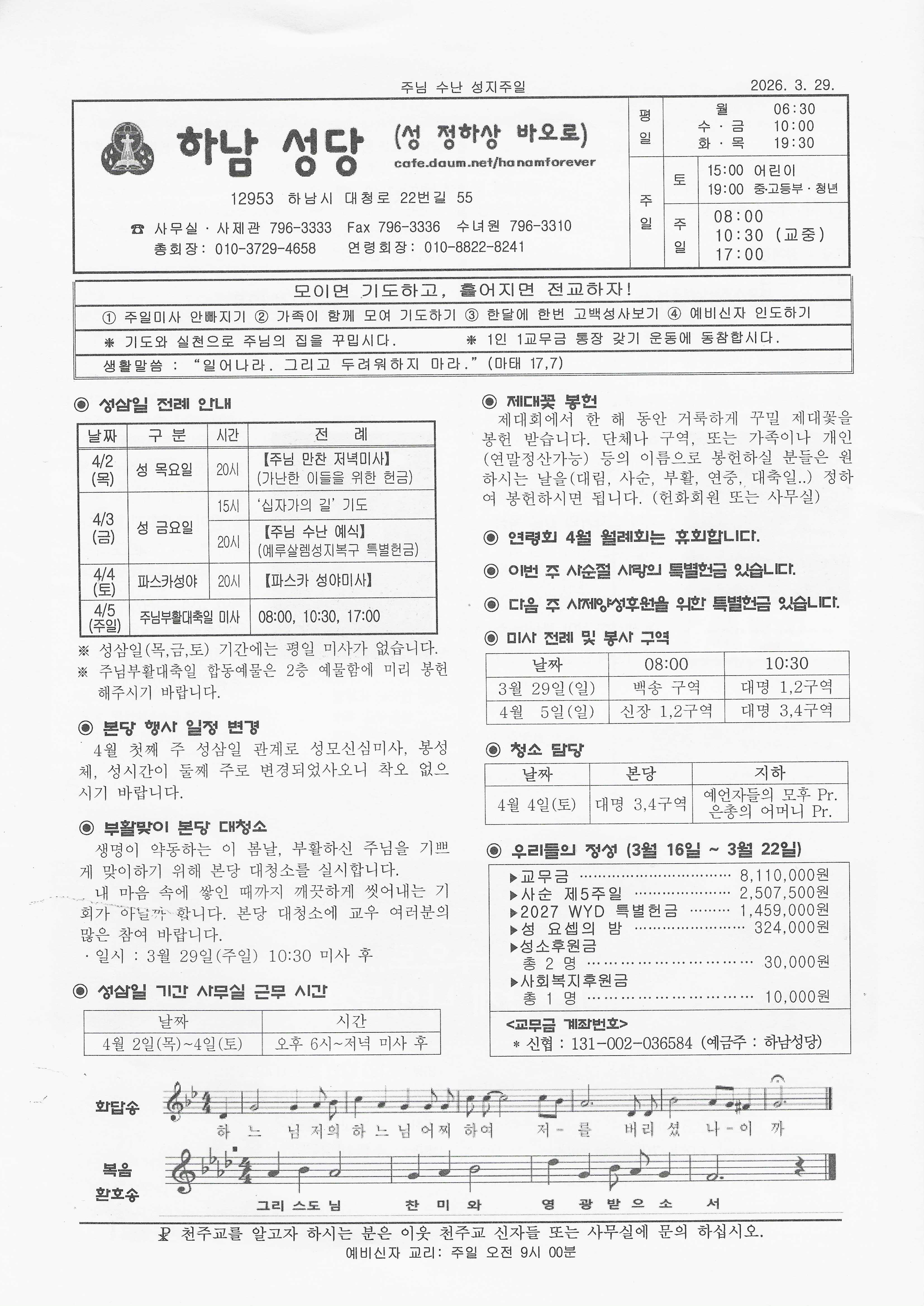 주님 수난 성지 주일 - 2026. 3.29 (제2197호) 작성자전명호 라파엘|작성시간26.03.29|조회수108 목록 댓글 0 글자크기 작게가 글자크기 크게가 수원주보 제2197호-2026. 3.29.pdf12.51MB 첨부파일첨부된 파일이 2개 있습니다. jpg 파일 2026. 3.29.jpg 다운로드 pdf 파일 수원주보 제2197호-2026. 3.29.pdf 다운로드 다음검색 현재 게시글 추가 기능 열기 북마크 신고 센터로 신고 댓글 댓글 0 댓글쓰기 답글쓰기 댓글 리스트