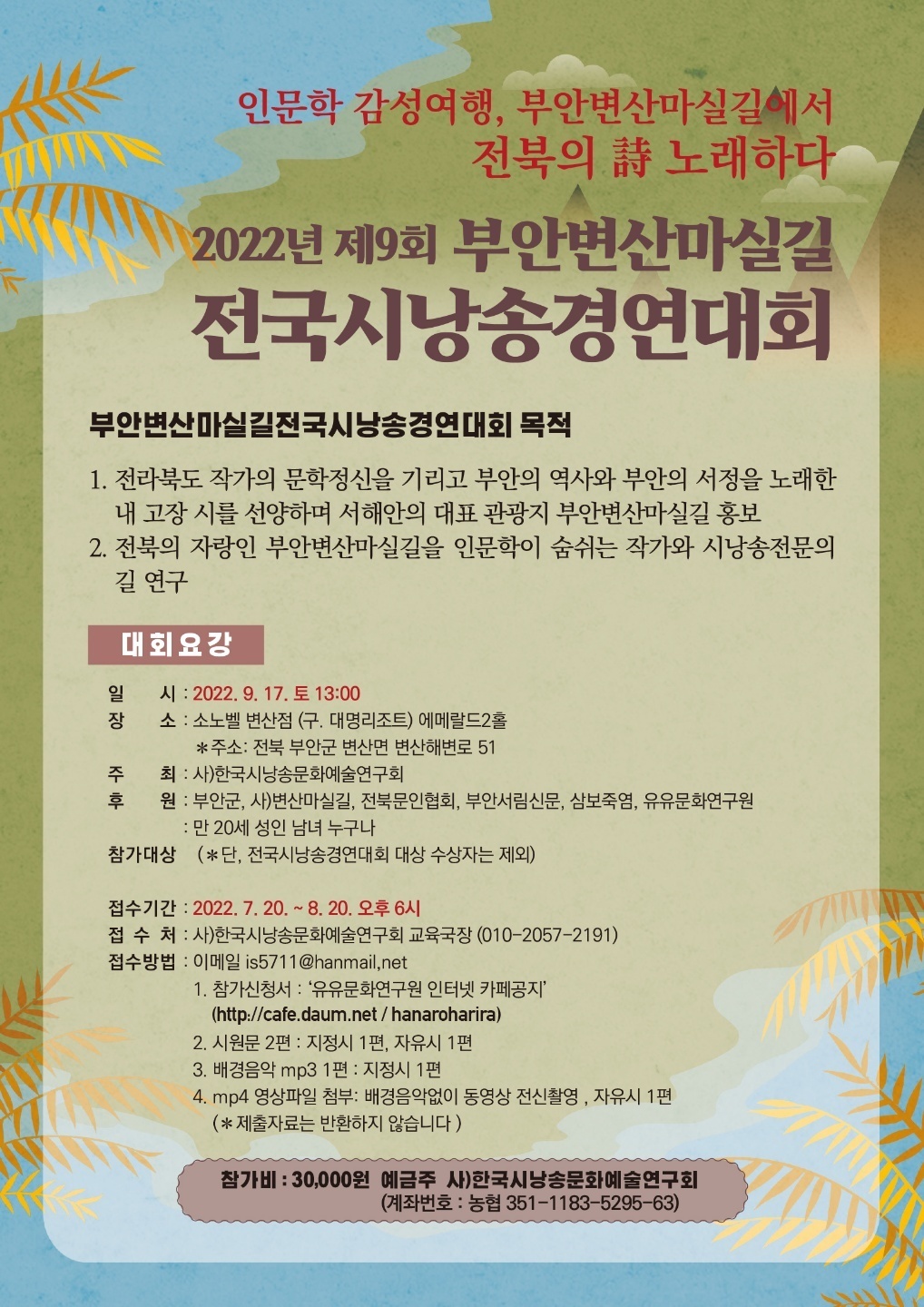 2022년 제 9회 부안 변산마실길 전국시낭송경연대회를 아래와 같이 공지 하오니