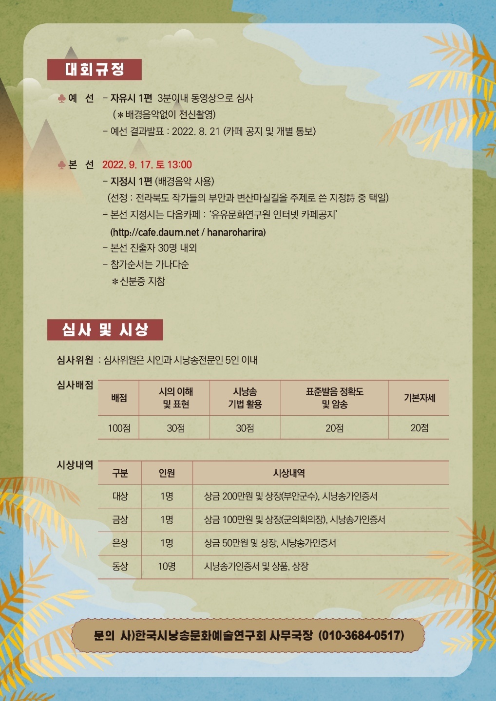 (사) 한국시낭송문화예술연구회 제9회부안변산마실길시낭송대회운영위원장