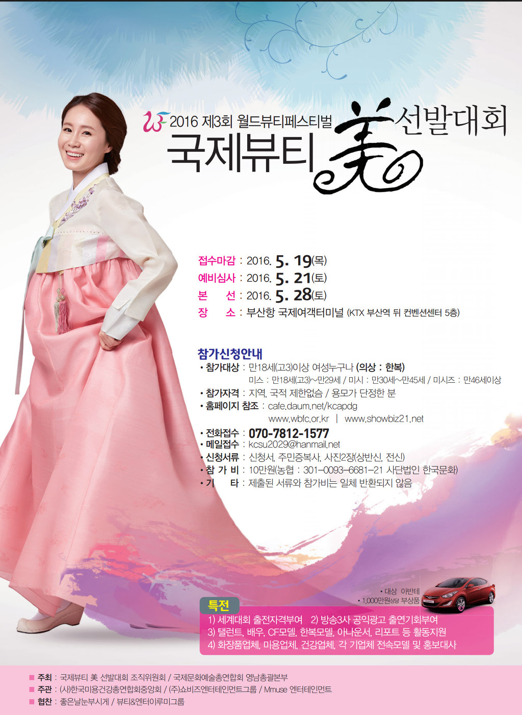 2016국제뷰티 美 선발대회!! 만18세 이상 누구나! (미스/미시/미시즈) 도전과 추억 만들기!! 작성자창조|작성시간16.04.27|조회수106 목록 댓글 0 글자크기 작게가 글자크기 크게가 다음검색 현재 게시글 추가 기능 열기 북마크 공유하기 신고 센터로 신고 댓글 댓글 0 댓글쓰기 답글쓰기 댓글 리스트