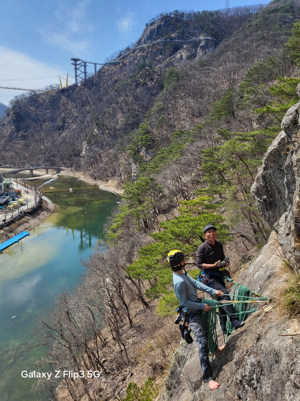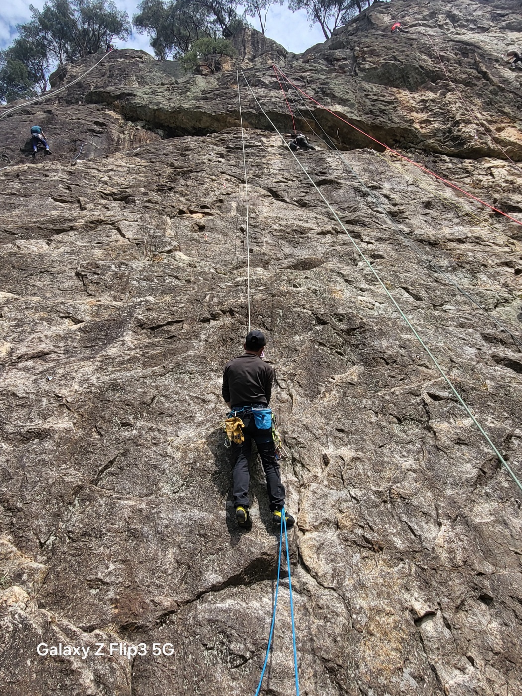 봉희 선배님과 저는 시작구간 오버행에서 퀵드로우를 잡고 올라갔습니다ㅠ 5.10d의 난이도 답게 저는 꽤 오랜 시간이 걸려 올라갔습니다. 예전에 한번 올라갔었는데도 쉽지 않았습니다. 3p는 인공등반이라 등반하지 않았으며 등반 순서대로 하강 후 잠시 휴식시간을 가졌습니다