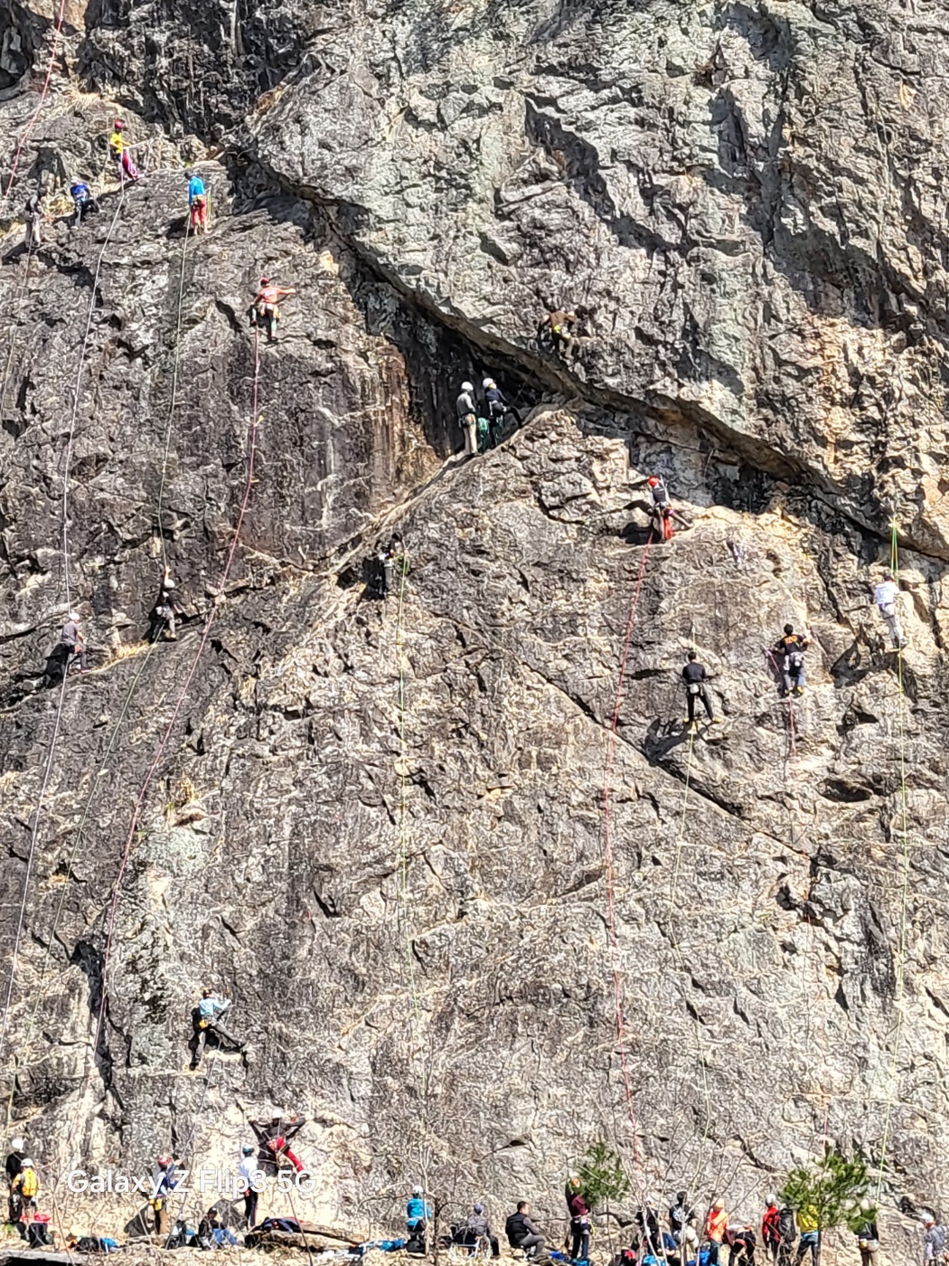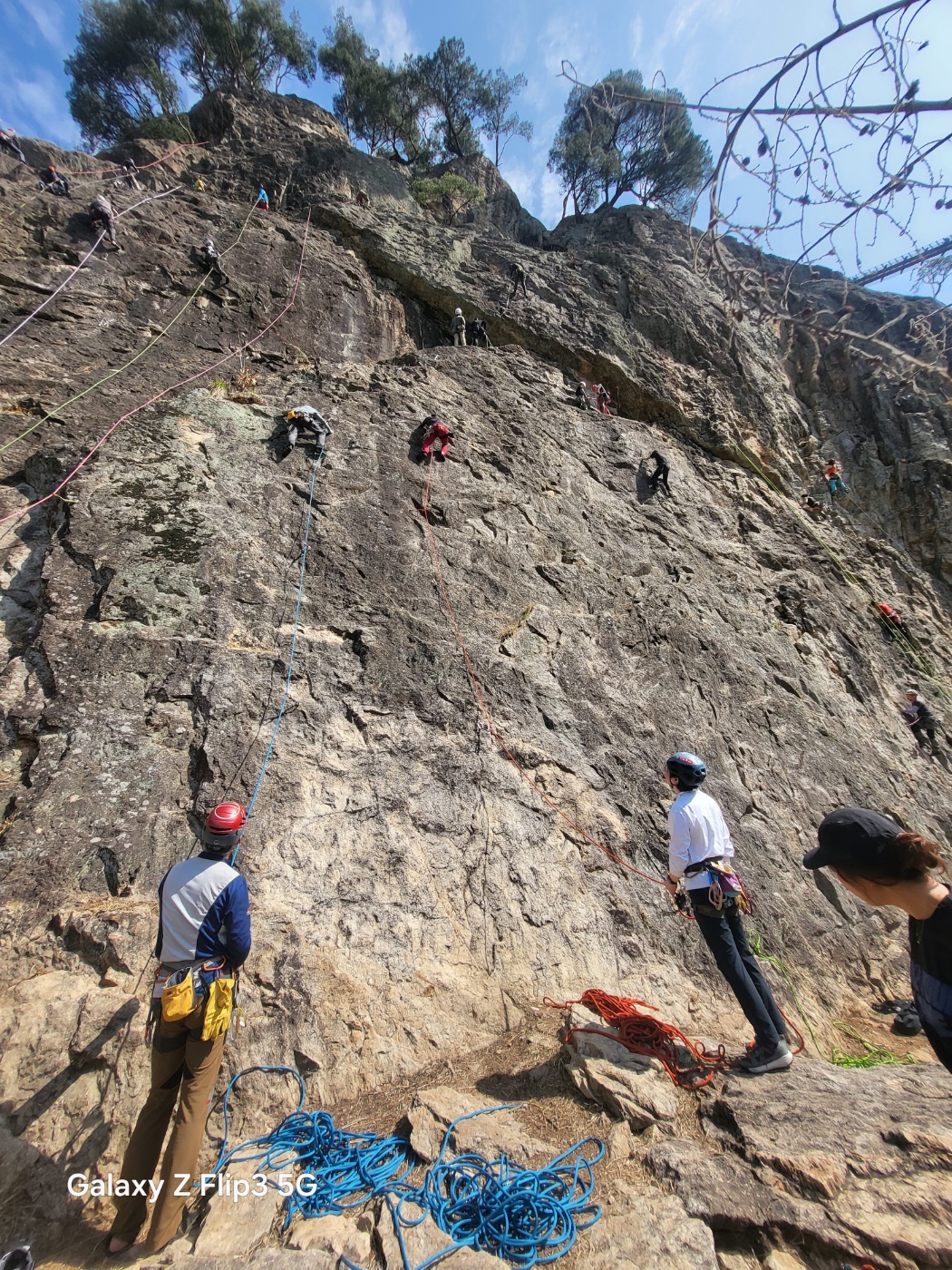 옆 루트를 오르던 우리 한크랙팀과 합류하여 하강을 하였으며 마지막으로 하강하셨던 회장님께서는 하강기를 깜박하셔서 반까베스통 매듭으로 하강하셨습니다. 임기응변으로 상황을 대응하신 회장님이 대단하면서도 앞으로 등반자 더블체크할때는 하강기도 체크하면 좋을것 같습니다. 하드프리 단피치 등반이라도 혹시 모를 상황에 대비하는 습관은 도움이 될테니까요^^