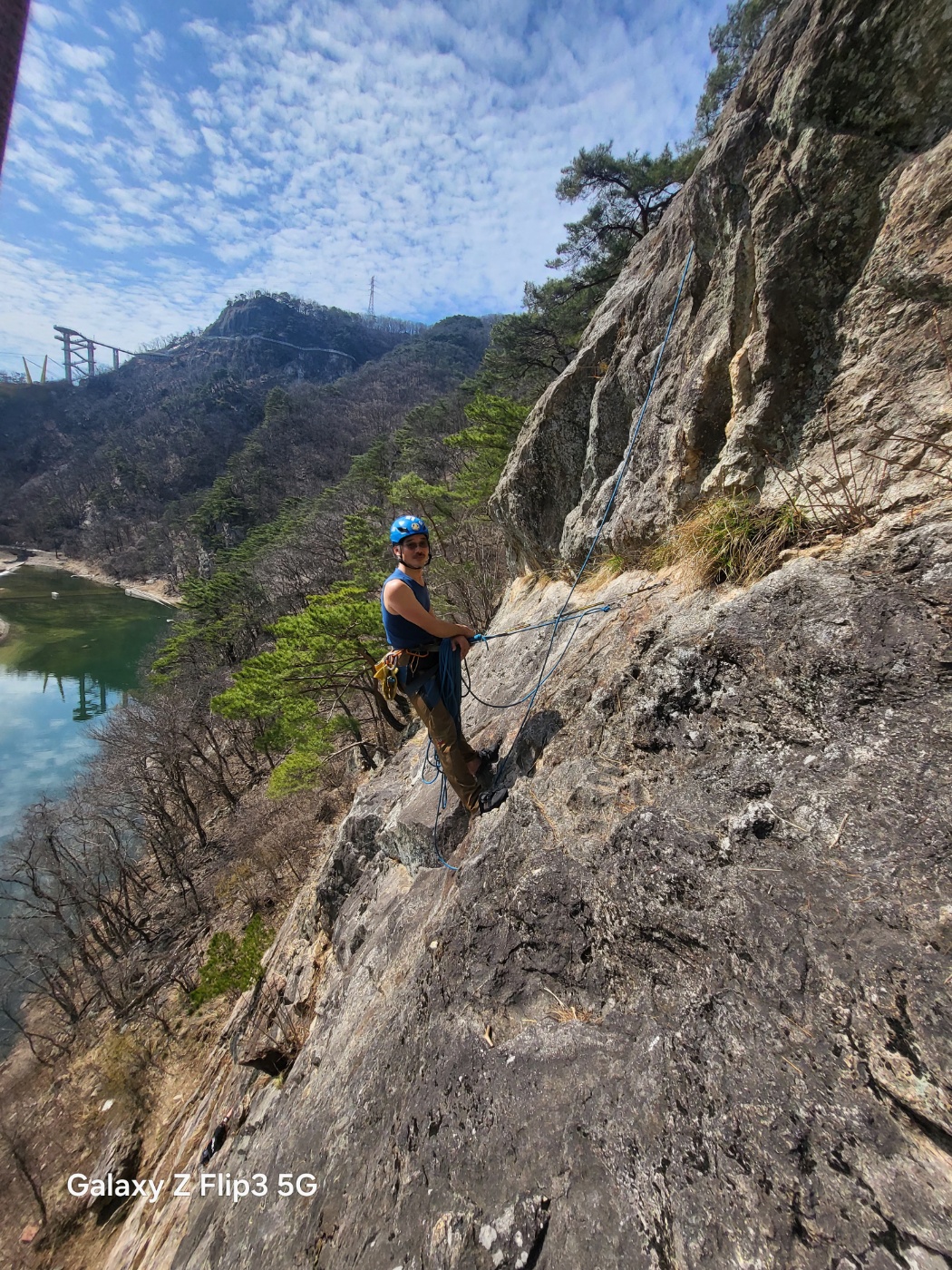원주 (1p, 5.7)을 선등하셨습니다. 봉희 선배님께서 먼저 빌레이를 보신 후 세컨드로 등반하시고, 제가 말자를 맡았습니다