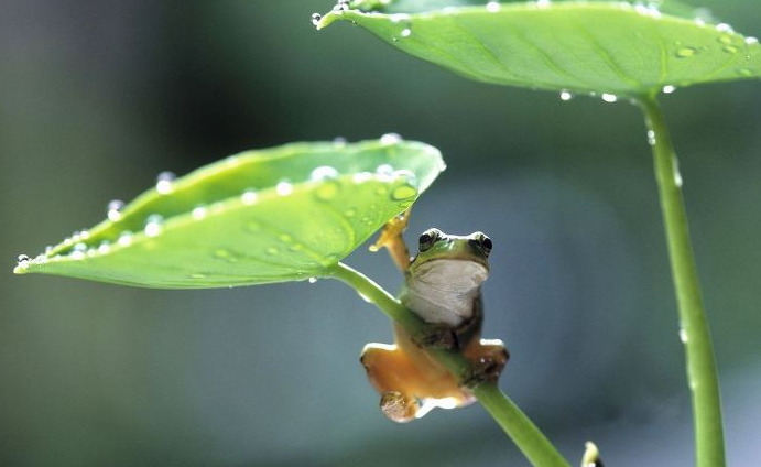 한참을 지켜보자니 개구리가 이리 저리 나무잎 방향을 바꾸어가며 비를 피하기 위해 나름 용을 쓰더라는 후문.