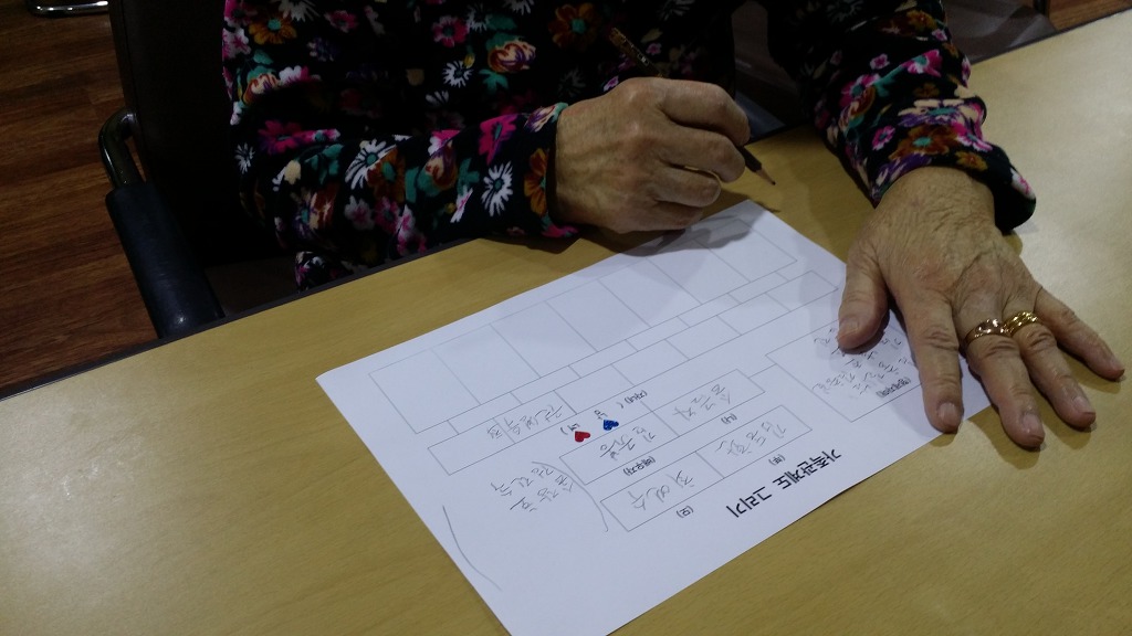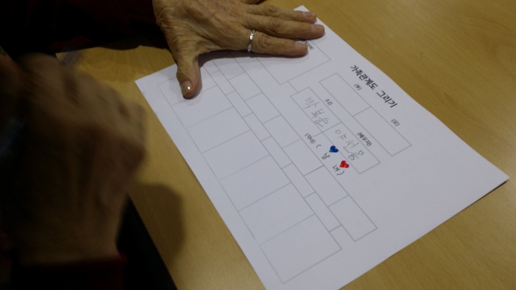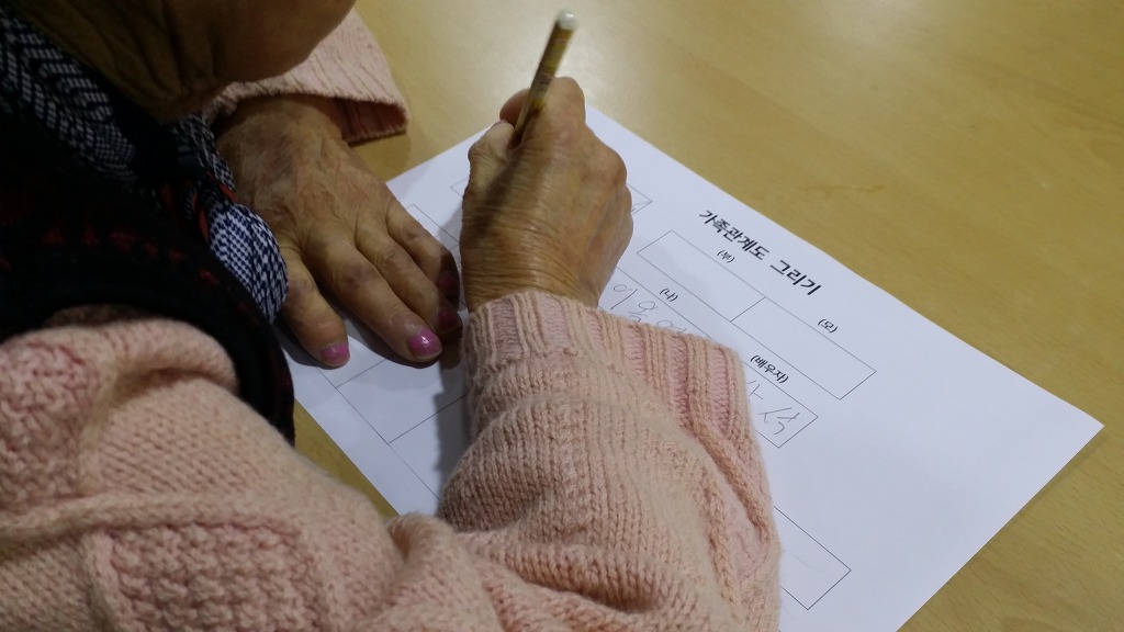 이순간이라도 가족들의 이름도 써보고 불러보며.. 대화를 통해 과거에 대한 기억을 자연스럽게 회상할수있도록