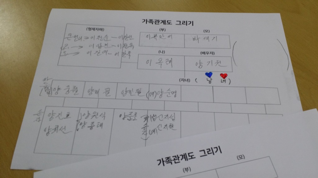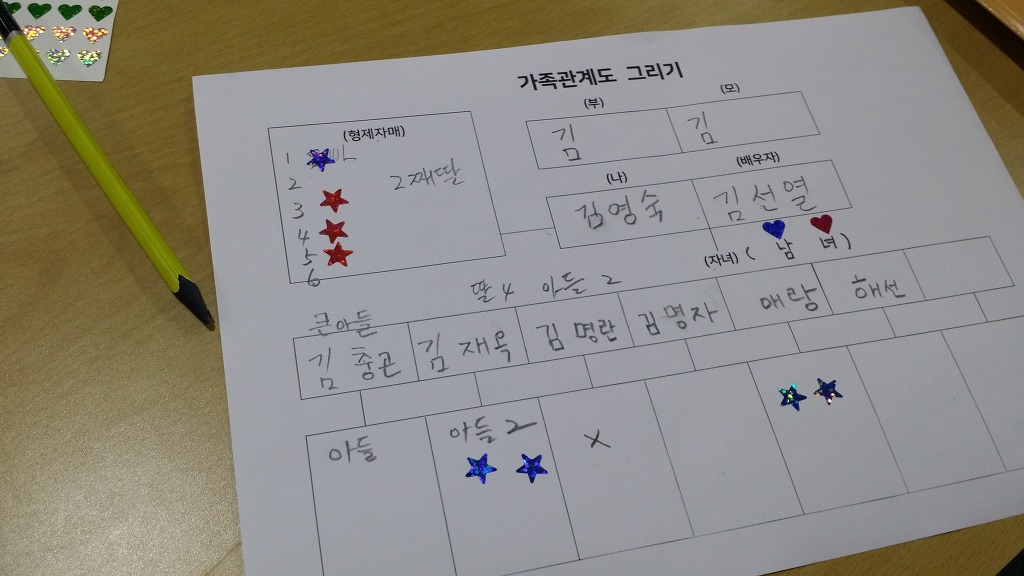 오늘은 가족 가계도를 그려보며 그동안 잊고 지냈던 가족,친지들의 이름..얼굴..추억을 떠올려 보는