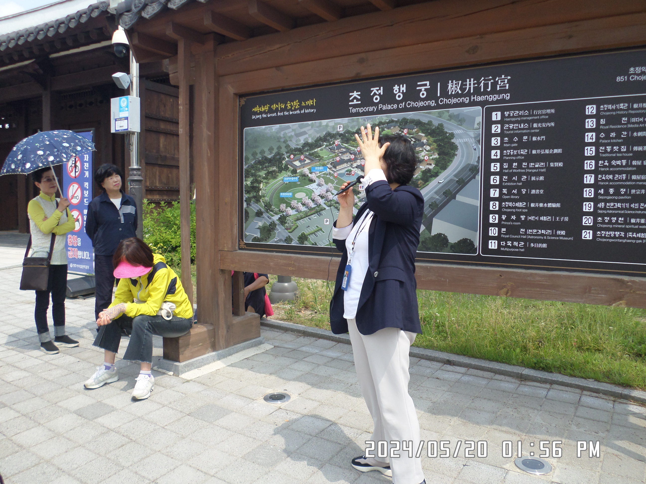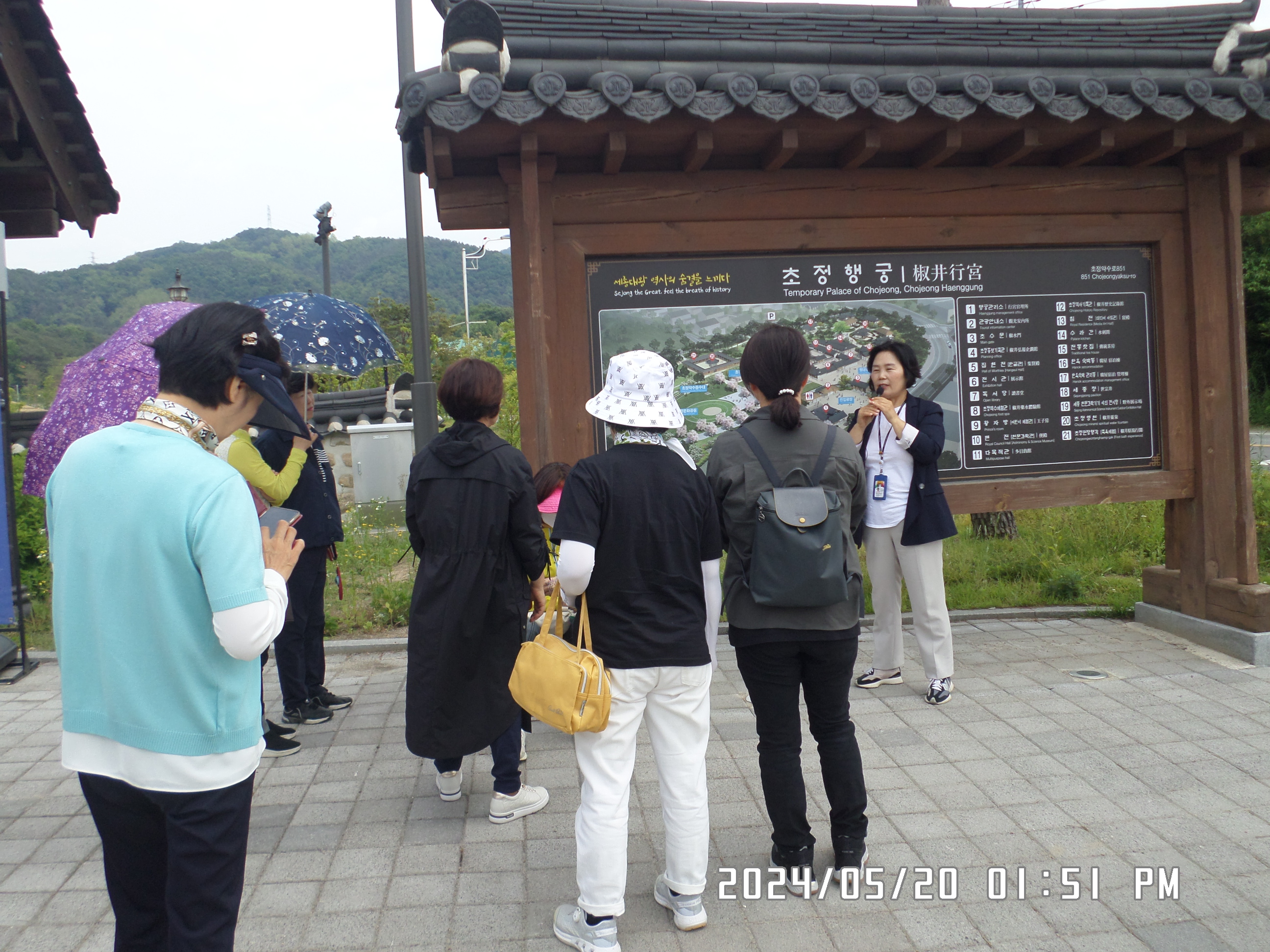 2024년 5월 20일 청주시 직지 문화연구원 홍신자 원장님을 비롯하여 임원진 여러분께서 수고해주신 덕택으로 직지문화연구회원 여러분이 오랫만에 봄나들이를 다녀왔습니다. 코스로는 시티투어 버스를 이용하여 청남대 가로수길을 거쳐 문의면에 소재한 "마중" 가는길 한정식 식당에서 점심을 먹고 청주시 내수면 "초정행궁" 의 세종대왕의 거룩한 업적을 표경순 해설사님의 해설을 청취하며 짧은 시간이었으나 뜻있고 갑진 시간의 즐거웁고 행복한 추억을 엮을수있어 사진을 업로드하니 함께 오랬동안 아름다운 추억으로 간직해주시고 회원님들을 비롯하여 가족분들이 항상 건행하시기를 기원드림니다. 감사합니다.