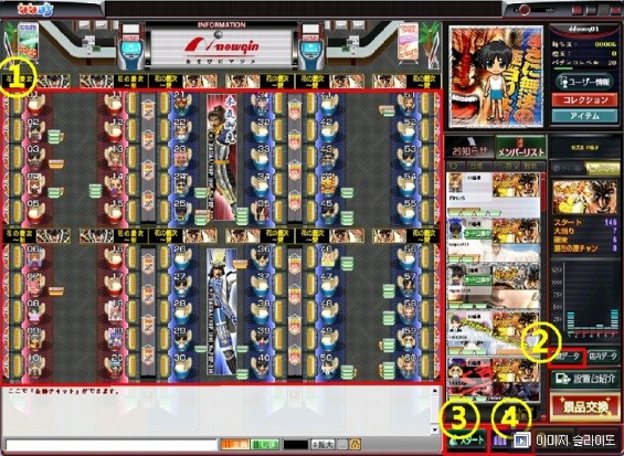 1번-게임룸에 입장하면 위 이미지를 보시는바와같이 게임 기계들이 1번~60번까지 나열이 되어있