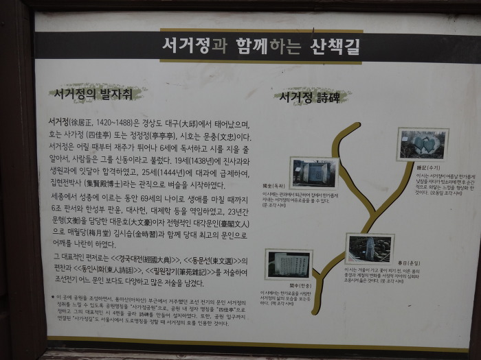 서거정은 용마산 자락에 정자 사가정(四佳亭)을 짓고 살았다.