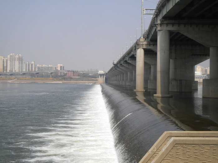 부속시설인 수중보를 설치하여 한강의 수위를 일정하게 유지시켜 수위저하에 따른 취수장의 취수곤란,