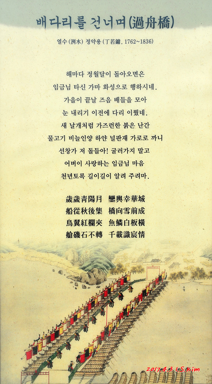 다산 정약용은 그 ''배다리를 지나며過舟橋)' 시(詩)를 남긴다.