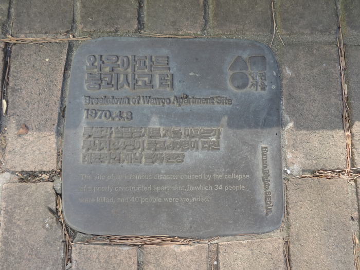공원에서는 시민들의 기념식수비도 찾을 수 있었다. 와우아파트 참사를 기억하는 동판만이 그날을 이야기하고 있다.