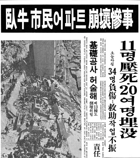 1970년 4월 8일 오전에 일어난 ‘와우시민아파트 붕괴’사고는 무모한 불도저식 개발방법과 낮은 공사비 책정, 시공회사의 기초공사